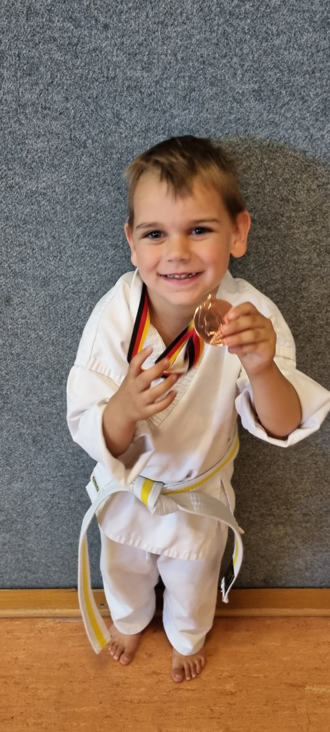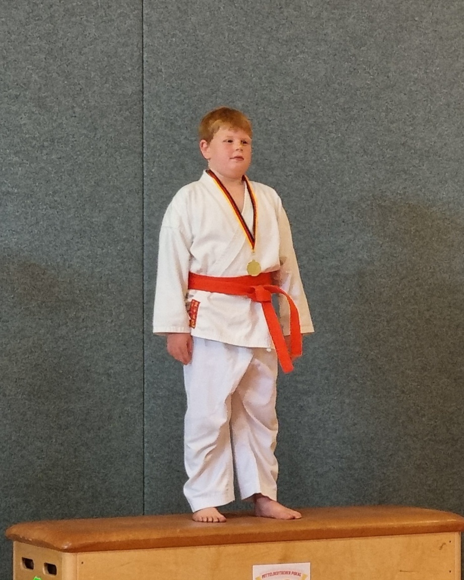 Der vierjährige Heinrich Wiessner hatte sein Debut und trat in den Kategorien Kihon und Kumite an. Hier zeigte Heinrich schöne Techniken und Mut im Kampf, weshalb er die Bronzemedaille gewann!