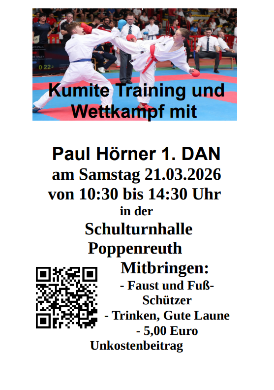 Kumite Training und Wettkampf mit Paul Hörner 1. DAN am Samstag 21.03.2026